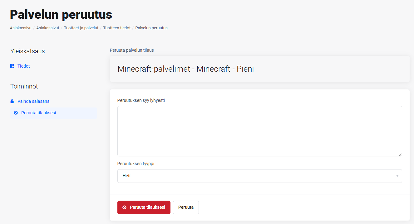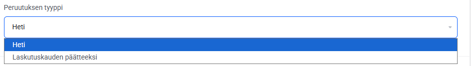Kirjoita tekstikenttään lyhyesti syy (Tämä auttaa meitä parantamaan palveluitamme) ja Valitse peruutuksen tyyppi tekstikentän alapuolella olevasta valikosta